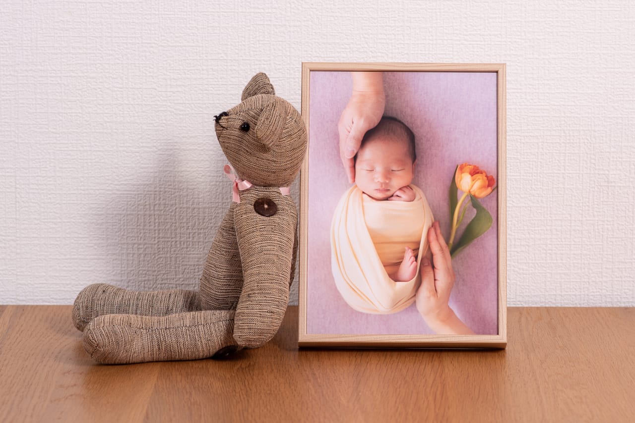 撮影の途中でも授乳をお願いすることがあります。 - お気に入りのぬいぐるみ、小物も一緒に撮影可能です!